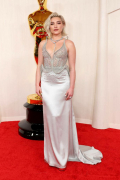 Florence Pugh a ales o rochie argintie brodata cu cristale Del Core, cu un corset in forma de caracatita.