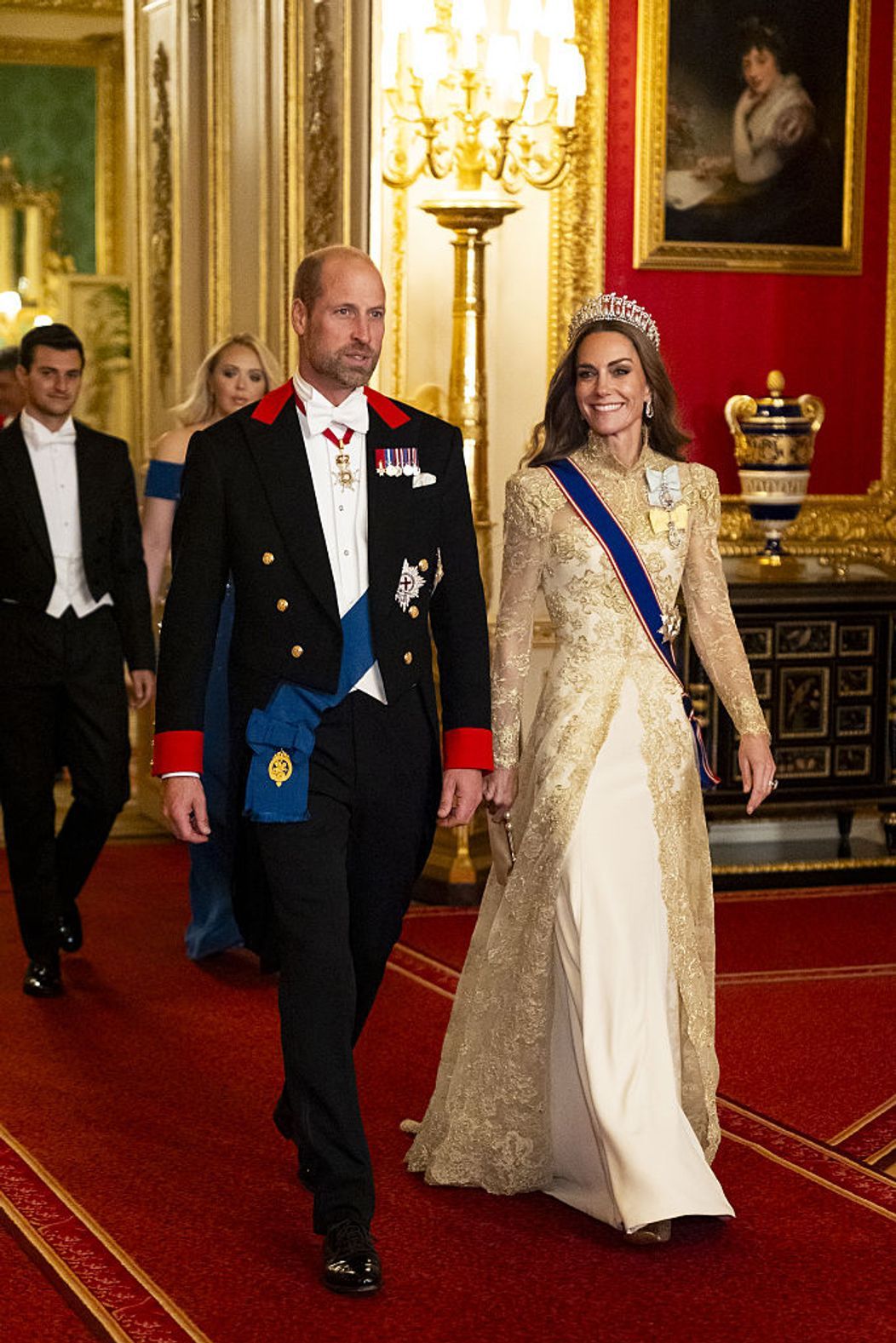 Înainte de banchet, Prințul și Prințesa de Wales au postat pe rețelele de socializare o fotografie de cuplu în ținută de gală, însoțită de mesajul: „Ready for The State Banquet”.