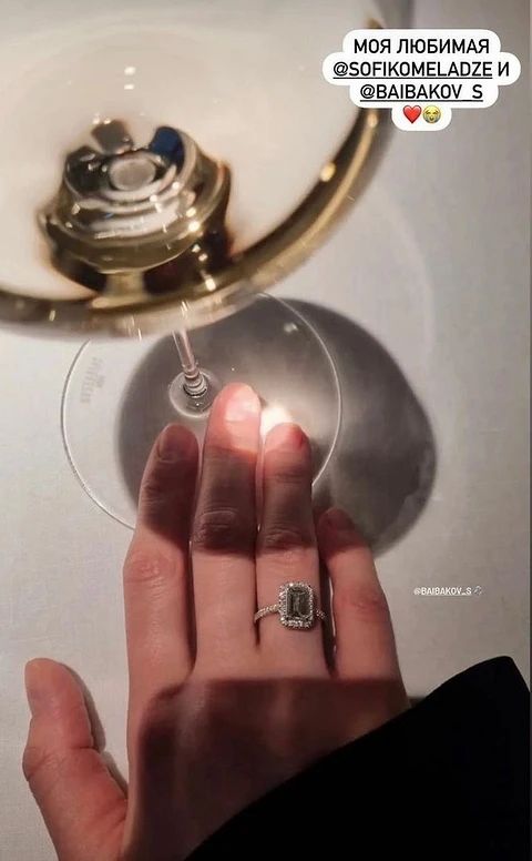 Ea a postat o noua fotografie pe pagina sa se Instagram in care arata mana lui Sofiko, iar pe degetul inelar are un inel cu un diamant impresionant. „Iubitii mei Sofiko si Savva”, a scris Arina.