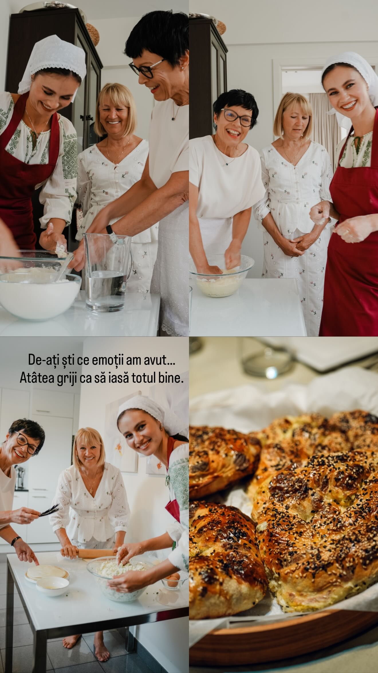 În acest sens, Nina a notat pe rețelele de socializare: „Asta da apreciere. Părerea ei despre plăcinte. Am adus aproape tot de acasă, până și semințele de susan, șorț și față de masă”.