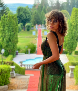 In cea mai recenta imagine postata pe retelele sociale, artista a ales sa imbrace o rochie cu decupaje in partile laterale, mai scurta in partea din fata si mai lunga in partea din spate, ceea ce i-a pus i valoare picioarele tonifiate.