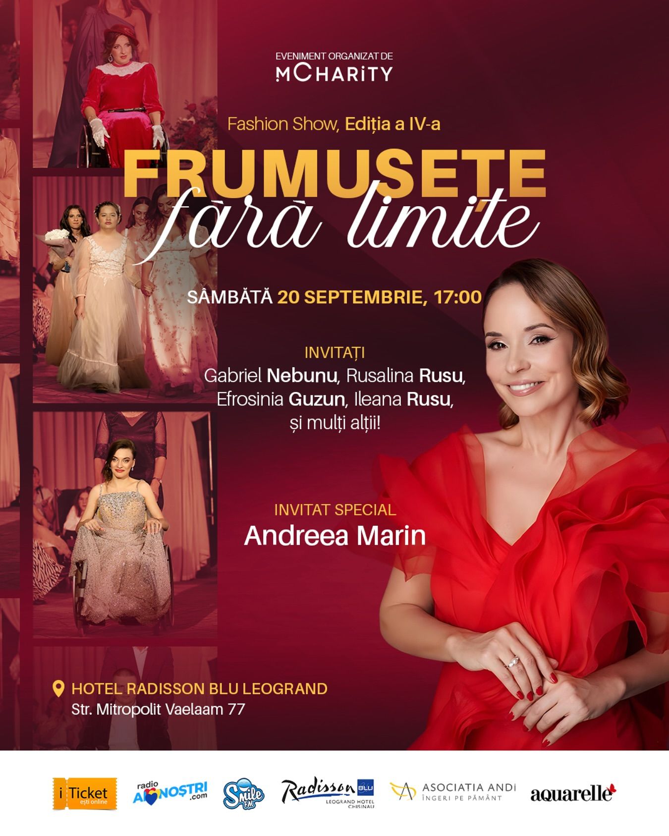 Pentru mai multe detalii despre Gala „Frumusețe fără limite”, dar și pentru achiziționarea biletului apasă AICI!