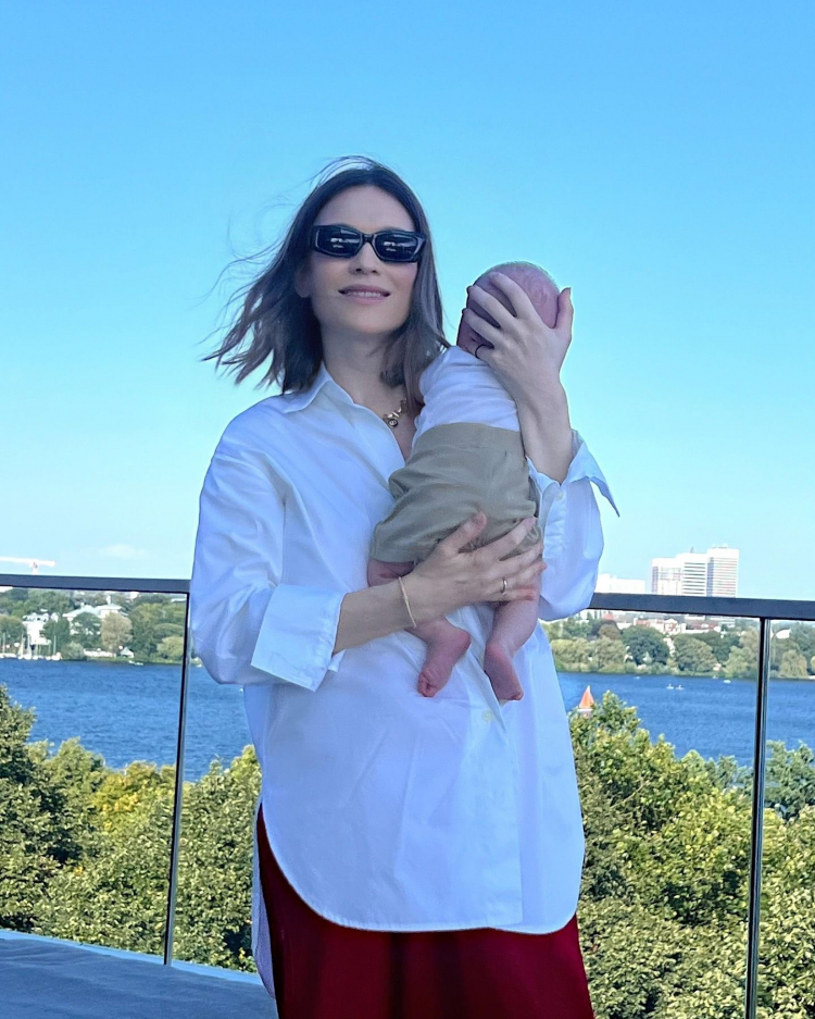Kilogramele pe care le-a acumulat în timpul sarcinii au dispărut rapid după naștere: „Am adăugat 14 sau 15 kilograme, am rămas așa cum eram înainte de sarcină, doar că burtica creștea în fiecare lună, în ultimele luni, chiar în fiecare zi. Avem un video atunci când glumeam cu Dimitrii, el spunea: <<Din spate nici nu aș spune că ești însărcinată>>”.