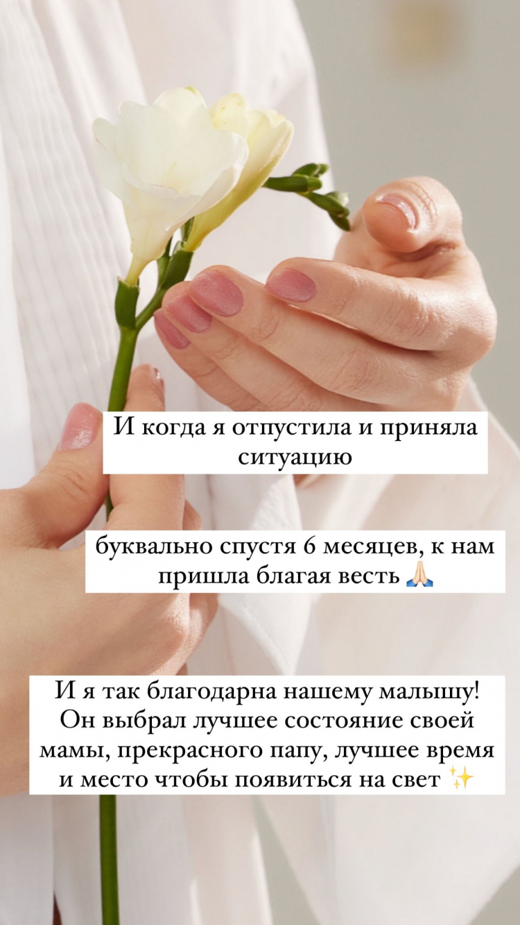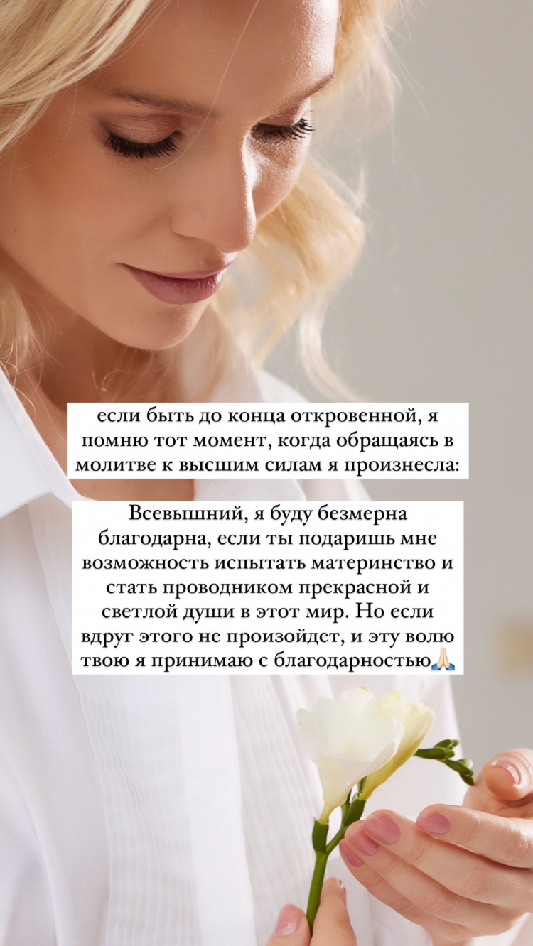În postare, Olia a inclus și o fotografie în care apare cu un zâmbetul pe buze, iar în descriere a notat:„Să fiu sinceră, până la urmă, eu îmi amintesc momentul în care prin rugăciune, i-am zis Domnului: <<Doamne, eu voi fi recunoscătoare dacă îmi vei da posibilitatea de a deveni mamă și de a aduce pe lume un suflet frumos și curat în această lume. Dar, dacă tu decizi că nu o să pot avea această posibilitate, eu îmi las viața în mâinile tale>>”.