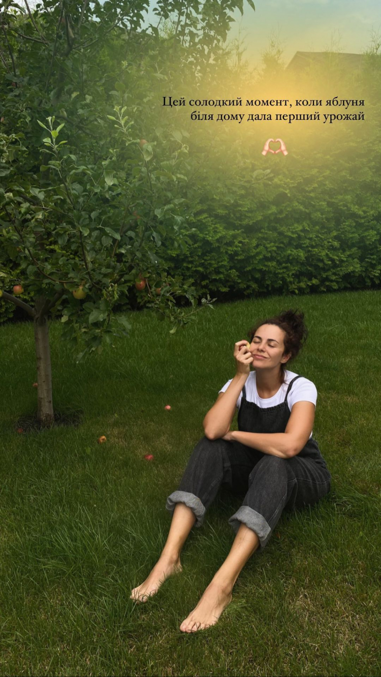 „Acest moment dulce cand marul din gradina casei tale a dat primele roade. Cele mai dulci mere sunt doar acasa”, a scris interpreta.
