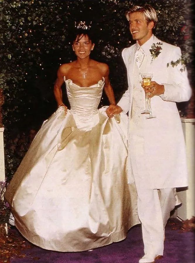 Cuplul si-a oficializat relatia in iulie 1999. Pentru sarbatoare, vedetele au ales un castel irlandez, a carui chirie a costat 100.000 de dolari. Tinerii casatoriti au platit aproximativ aceeasi suma pentru rochia de mireasa, realizata de cel mai faimos designer de nunti Vera Wong. Cu toate acestea, bijuteriile pretioase ale Victoriei s-au dovedit a fi mai scumpe decat tinuta in sine: colierul si tiara au costat aproximativ 160.000 de dolari. Bugetul total pentru nunta a fost de 800.000 de dolari.