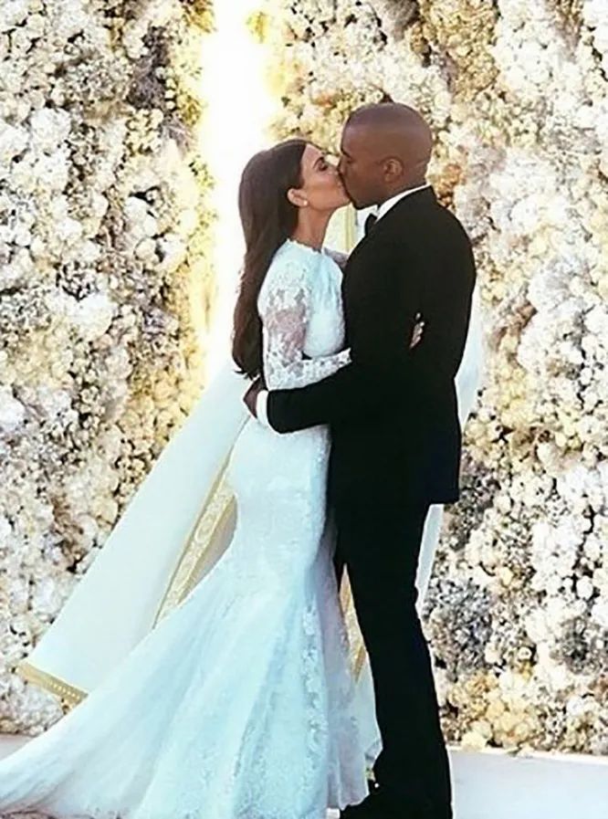 Sarbatoarea de lux a cuplului Kardashian West a avut loc in 2014. Aceasta a costat nou-casatoritilor 12 milioane de dolari. Ceremonia a avut loc in cetatea medievala Forte di Belvedere din Florenta. Cuplul a cheltuit aproximativ 410.000 de dolari pentru inchirierea castelului. Rochia de mireasa a fost facuta de casa de moda Givenchy. Rochia lui Kim a costat 2,1 milioane de dolari. Majoritatea cheltuielilor au fost destinate decoratiunilor. De exemplu, altarul a fost complet decorat cu trandafiri albi vii. Iar mai tarziu Lana Del Rey a cantat pentru oaspetii sarbatorii.