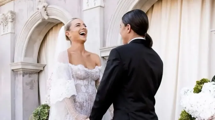Sam Kerr și Kristie Mewis s-au căsătorit la impresionanta Dionysus Villa, din orașul natal al fotbalistei australiene, Perth. Steaua Matildas a purtat un smoking negru, accesorizat cu o foloare albă aplicată în piept, în timp ce soția ei, Kristie Mewis, a atras toate privirile într-o ținută albă spectaculoasă, un corset peste care se așeza o fustă transparentă cu detalii sclipitoare pe întreaga lungime.