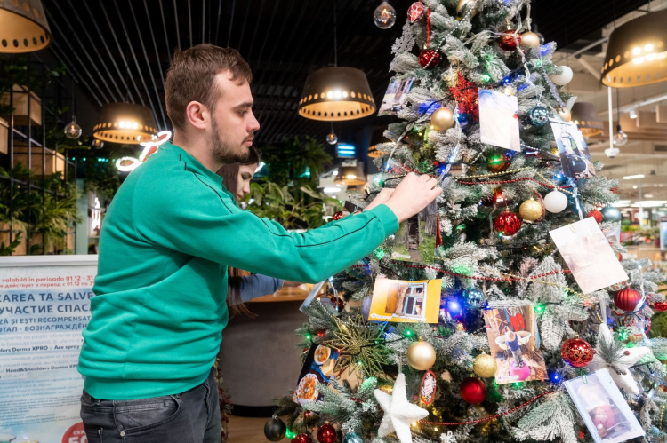 Una dintre coordonatoarele proiectului, Iustina Rotaru a oferit mai multe detalii despre aceasta initiativa: „Noi ne-am adunat in cadrul campaniei sociale „Sa fii Mos Craciun e simplu”. Este deja la a doua editie. Noi lucrand in satele Republicii Moldova suntem tristi sa vedem ca multi copii vor petrece Anul Nou si sarbatorile de iarna flamanzi si de asta am organizat aceasta campanie. Aici avem bradul, iar pe el sunt atasate poze cu familii beneficiare si plicuri. In fiecare plic se afla istoria fiecarei familii cu care lucram si o lista de produse de care ar avea nevoie.”