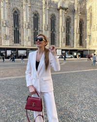 Mamica a trei copii, arata senzational, aceasta fiind imbracata intr-un costum clasic format din pantaloni si sacou, cu ochelarii pe ochi si buzele rosii, a postat o poza cu Tiberiu in brate, in descrierea careia a scris ca: „Fashion mama, dar prioritar #mama”