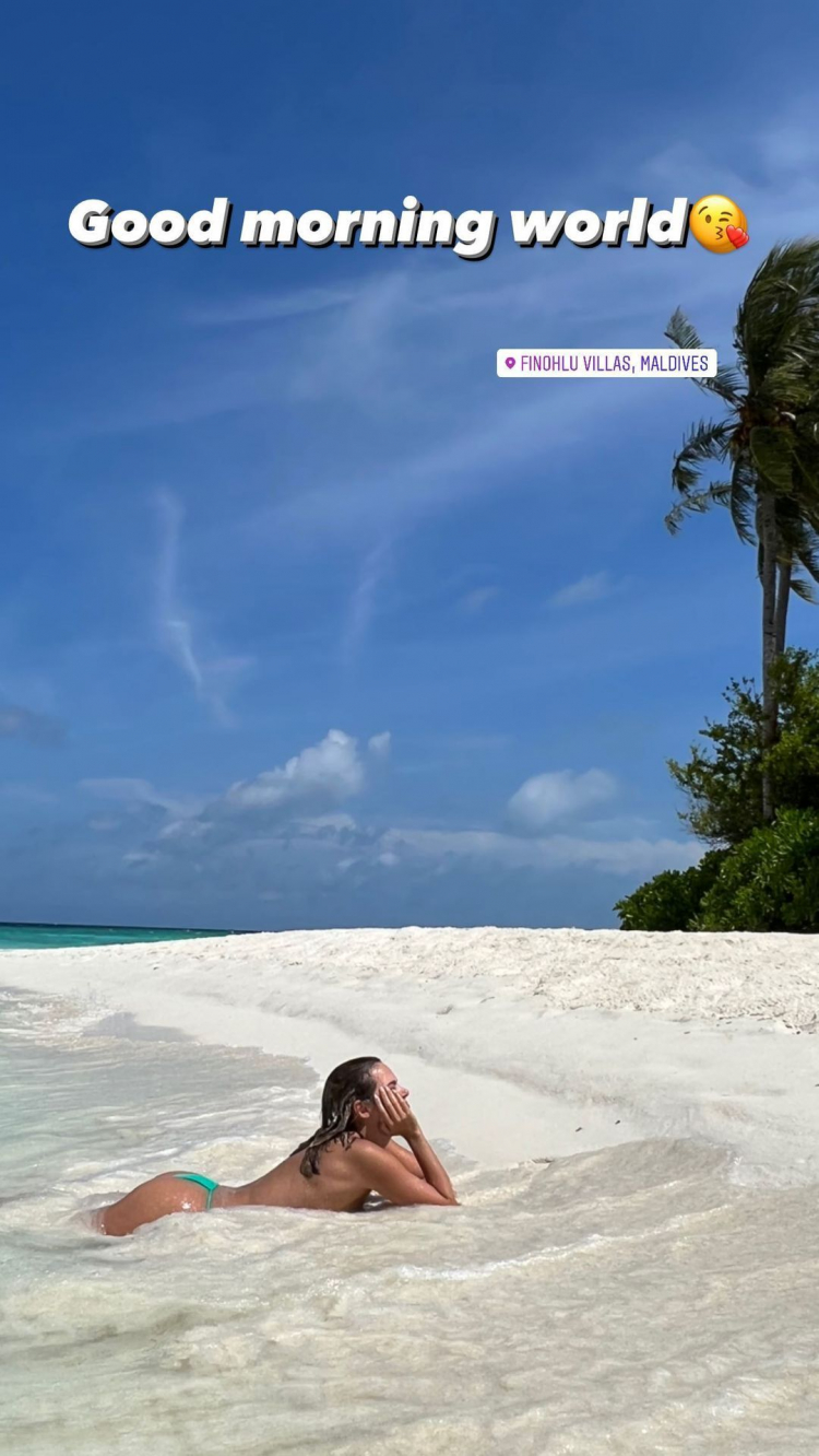 „Buna dimineata, lume”, a scris Xenia, postand locatia insulelor Maldive.