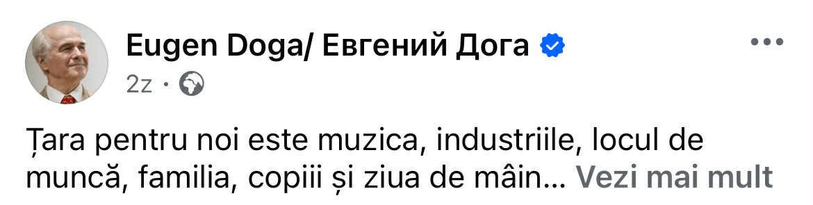 De asemenea, acesta a postat și un filmuleț de la concertul său „Eugen Doga – 85 de primăveri”, care a avut loc în urmă cu trei ani.