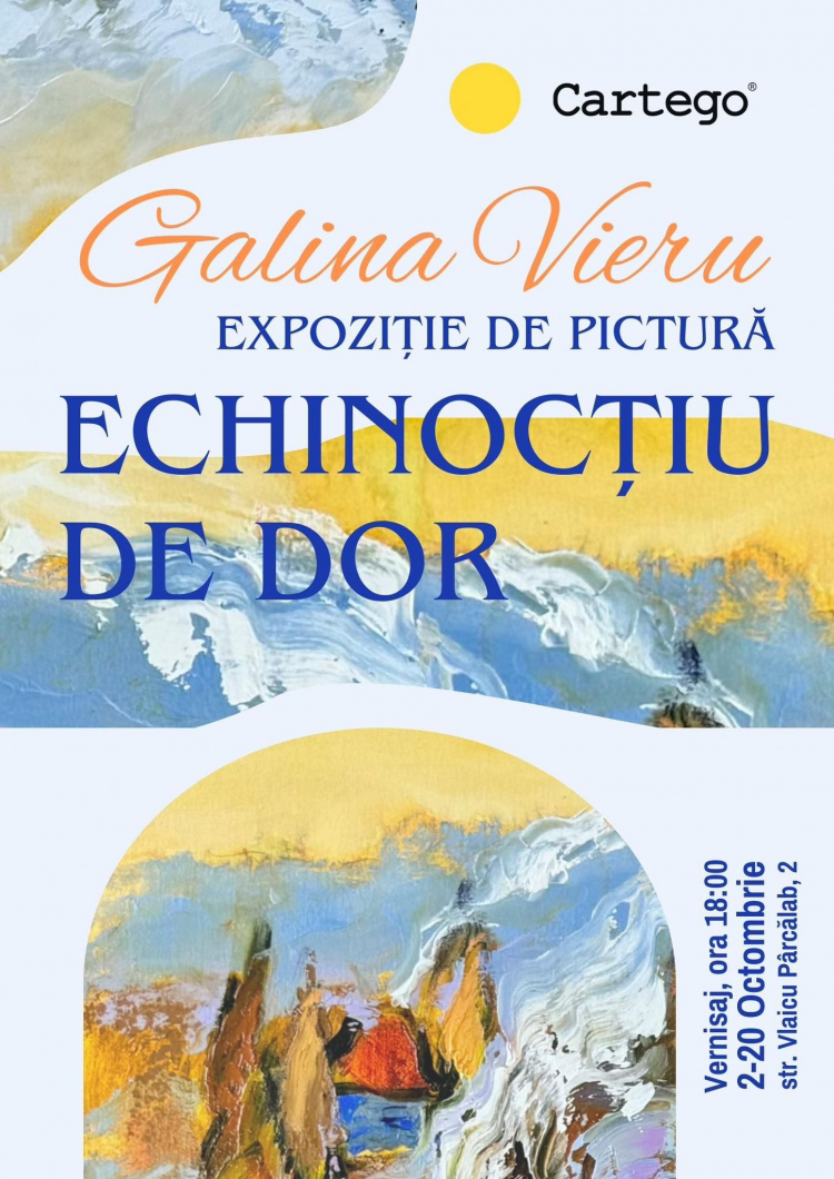 Prin emoție și culoare realizează picturi ce îți dă o stare de nedescris, iar creativitatea ei nu are limite. „Echinocţiu de dor” se numește expoziția de artă a Galinei Vieru, care recent a fost vernisată. „Noi întotdeauna purtăm un dor de oamenii iubiți, care poate au plecat în altă lume, un dor de casă, de țara unde ne-am născut și în același timp, avem un dor față de oameni și locuri pe care ne dorim să le cunoaștem și să le atragem în viața noastră. Echilibrul de dor pe care îl avem în trecut și cu cel care vine din viitor se întâlnesc în prezent și în viziunea mea l-am numit <<Echinocţiu de dor>>”, a explicat pictorița.
