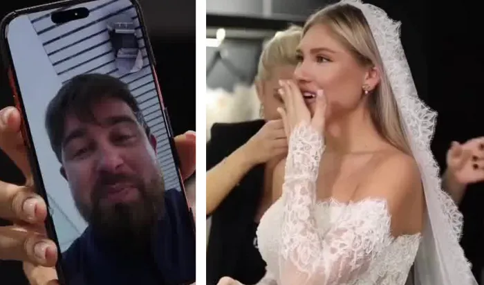 În cele din urmă este evident că momentul face parte dintr-o colaborare cu salonul de rochii de mirese, dar acest lucru nu înseamnă că reacția iubitului acesteia, stomatologul Vladislav Crilic, nu este una sinceră.