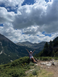 Privind spre varful Vihren, intelegi ca cel mai greu abia urmeaza: O portiune pietroasa din bolovani mari, fara un drum sau o carare anumita. In acel moment, pare imposibil: “Nu am cum sa urc pe aceasta portiune si sa ajung in varf!”, mi-a trecut prin gand. Ei bine, incetul cu incetul, cu pauze dese si privelisti minunate, am ajuns! Fericireee!!!Urcarea a durat 5 ore, a fost o ascensiune in care te misti constant facand doar genuflexiuni, dar a meritat din plin!