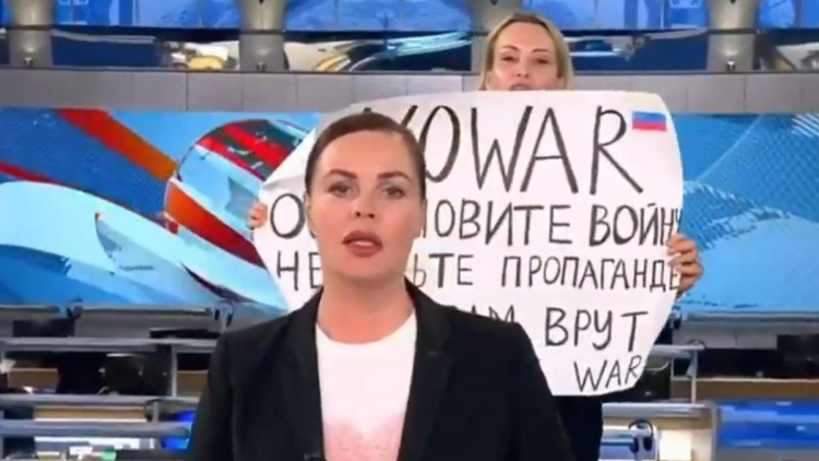 O jurnalista a intrat in direct la postul public tv din Rusia cu un mesaj anti-razboi. Inainte de acest gest, aceasta a inregistrat si un mesaj video, ajuns ulterior in mediul online. Femeia a intrat in direct cu o pancarta pe care scria: „Nu credeti propaganda. Te mint aici”.