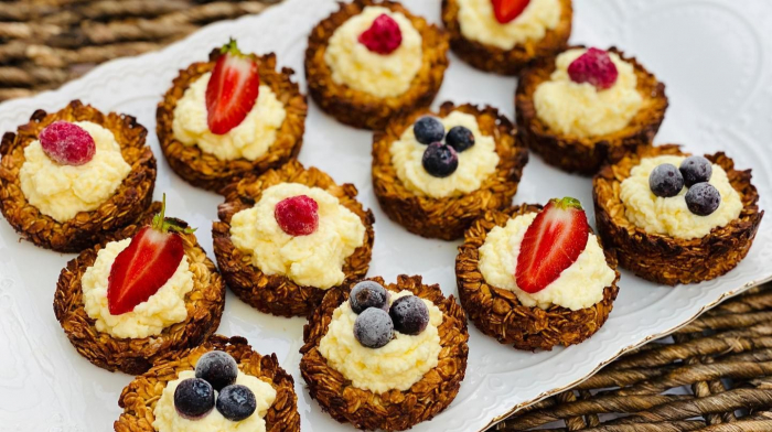 „Acest desert mi-a întrecut toate așteptările”, a spus Carolina Costin despre coșulețele din fulgi de ovăz cu cremă și fructe de pădure.
