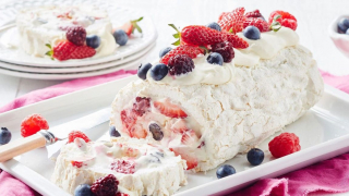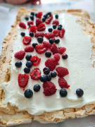 Pentru început batem spumă patru albușuri cu un praf de sare, puțină zeamă de lămâie și erititrol, pentru un indice glicemic mai mic. Turnăm compoziția pe hârtia de copt și coacem la 150 de grade Celsius timp de 30 de minute. Lăsăm blatul să se răcească, apoi îl dezlipim cu grijă. E foarte fragil, dar merită efortul.