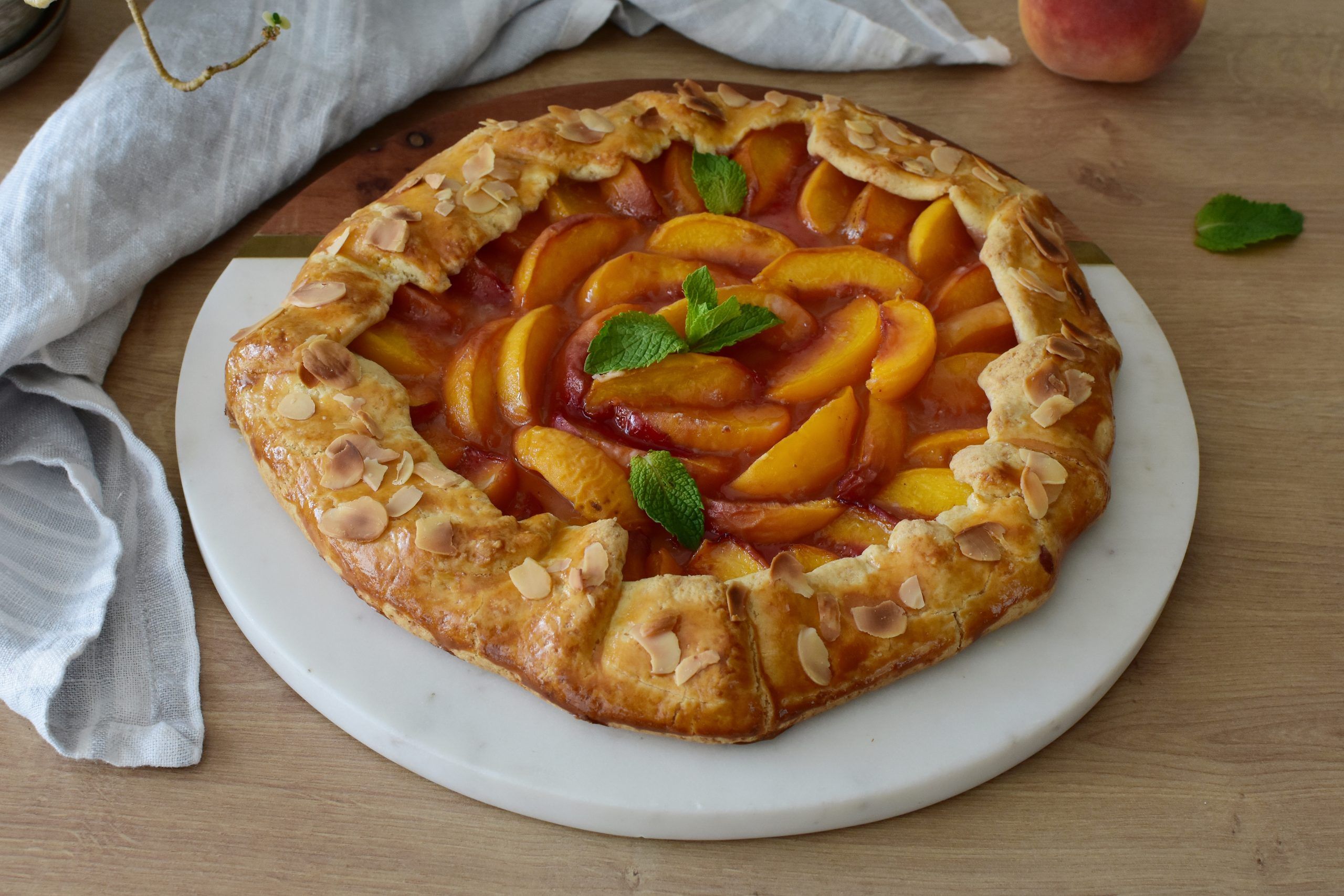Rezultatul? O tartă ce îmbină gustul intens al piersicilor coapte cu textura fragedă a blatului.