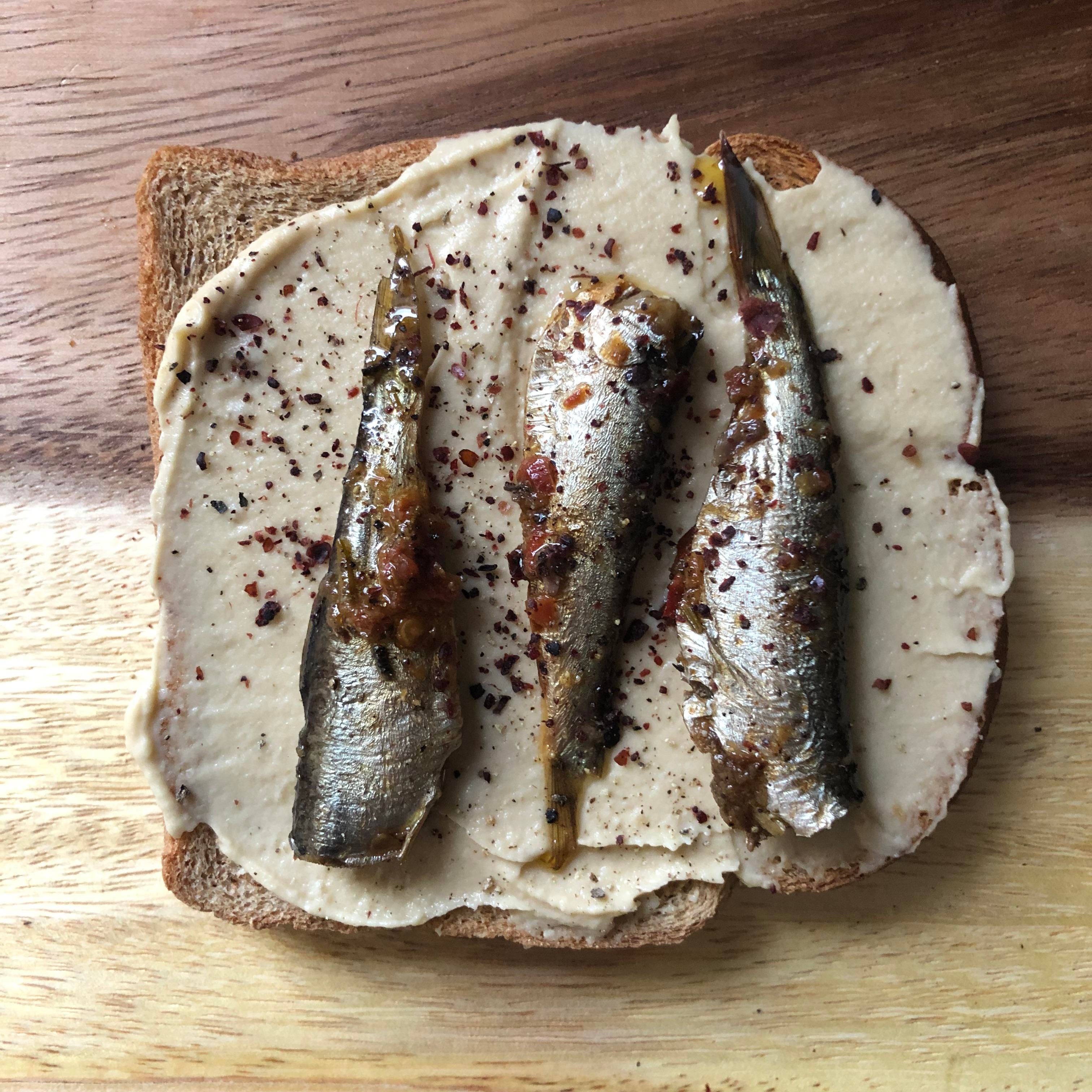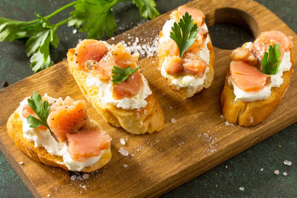 2. Bruschetă cu brânză maturată sau hummus cu sardine