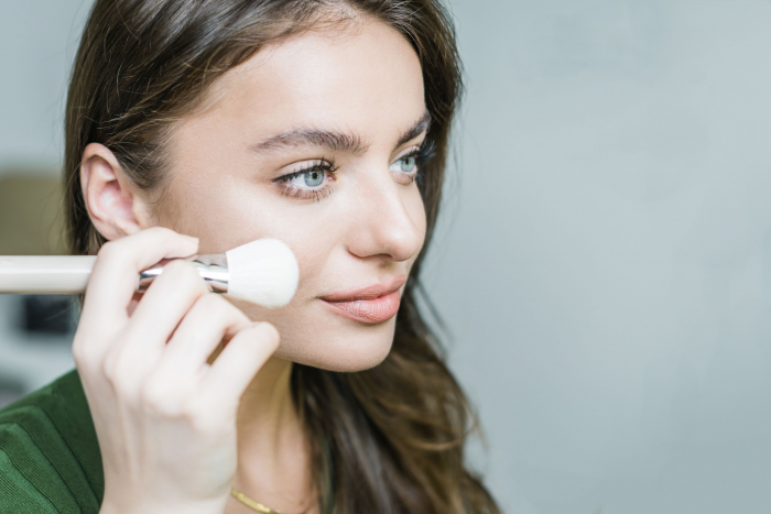 S-ar putea sa crezi ca acest lucru este evident, dar o multime de fete aleg intr-adevar nuanta gresita a fondului de ten. Cel putin, deoarece intr-o anumita zona a pielii, culoarea acesteia poate diferi. De exemplu, pe frunte, pielea este de obicei mai inchisa, ceea ce inseamna ca poti uniformiza tonul acolo cu un bronzer - pur si simplu aplica-l cu o perie pufoasa pe partea fruntii deasupra fondului de ten.