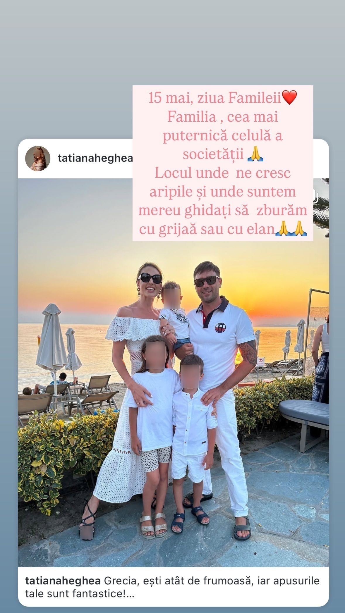 „Familia este cea mai puternică celulă a societății. Locul unde ne cresc aripile și unde suntem mereu ghidați să zburăm cu grijă sau cu elan”, a spus de asemenea pe online interpreta Tatiana Heghea.