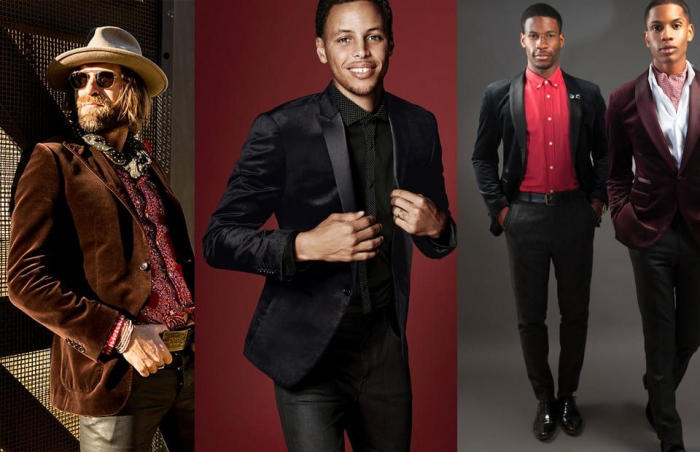 Incepand de la banalii pantofi de catifea, pe care aproape fiecare barbat ii are sau i-a avut in garderoba – pana la costumele de baie si aici ma refer nu la acel halat caldut, ci la chilotii pentru plaja – un must have in opinia marelor case de moda precum: Gucci, Versace, Dolce&Gabbana, Louis Vuitton, Balmain, etc. Și daca pentru slipii de plaja din catifea opteaza doar cei mai indrazneti barbati, pentru costume, pantaloni, pulovere si palarii gasim mult mai multi amatori. Colectiile toamna-iarna 2019 a caselor de moda abunda in tinute casual din catifea. Puloverele, pantalonii si camasile din catifea de culori inchise precum: negru, maro, bordo, albastru, verde briliant – vor fi la ordinea zilei in urmatorul sezon rece. Pentru festivitati sau alte evenimente mondene – designerii readuc in circuit fracurile clasice pentru barbatii mai conservativi si variante stilizate cu imprimeuri.