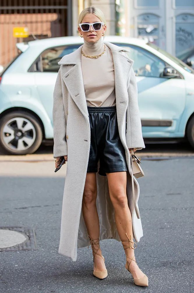 Invata cum sa porti pantaloni scurti toamna de la nemtoaica Caroline Daur. Ia ca baza un model realizat din materiale dense (piele, tesatura pentru pantaloni, nailon matlasat). Daca doresti ca picioarele tale sa apara mai mult, alege pantaloni scurti cu talie inalta, usor evazati deasupra genunchiului. Hainele calduroase si confortabile vor ajuta la compensarea lungimii. Imbina pantalonii scurti cu o maleta cu guler sau un pulover captusit si arunca deasupra o haina groasa de lana. Ca pantofi, atat mocasinii, cat si cizmele inalte cu talpi groase sunt perfecte.