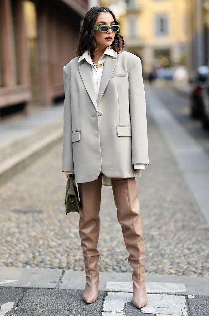 O jacheta lunga frumoasa iti poate inlocui rochia. Daca ocazia iti cere sa arati inteligent, ia drept exemplu tinuta Karinei Nigai. Un blazer supradimensionat si cizme inalte pana la genunchi care se extind peste tiv sunt o alegere indrazneata si sexy pentru o petrecere.