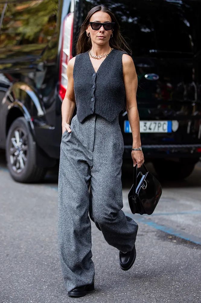 Un alt mod interesant de a adauga o vesta tricotata look-ului tau. Poart-o cu o fusta midi romantica si cu botine cu tocuri constante. O optiune excelenta atat pentru o plimbare, cat si pentru o intalnire romantica.