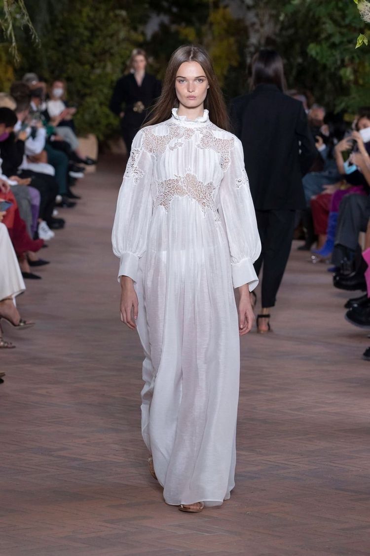 Una dintre cele mai sexi tendinte moda primavara-vara 2021. Oferind un sentiment boem, rochiile voluminoase, care curg liber, cu volane la guler si maneci lungi au creat un adevarat fashion show.