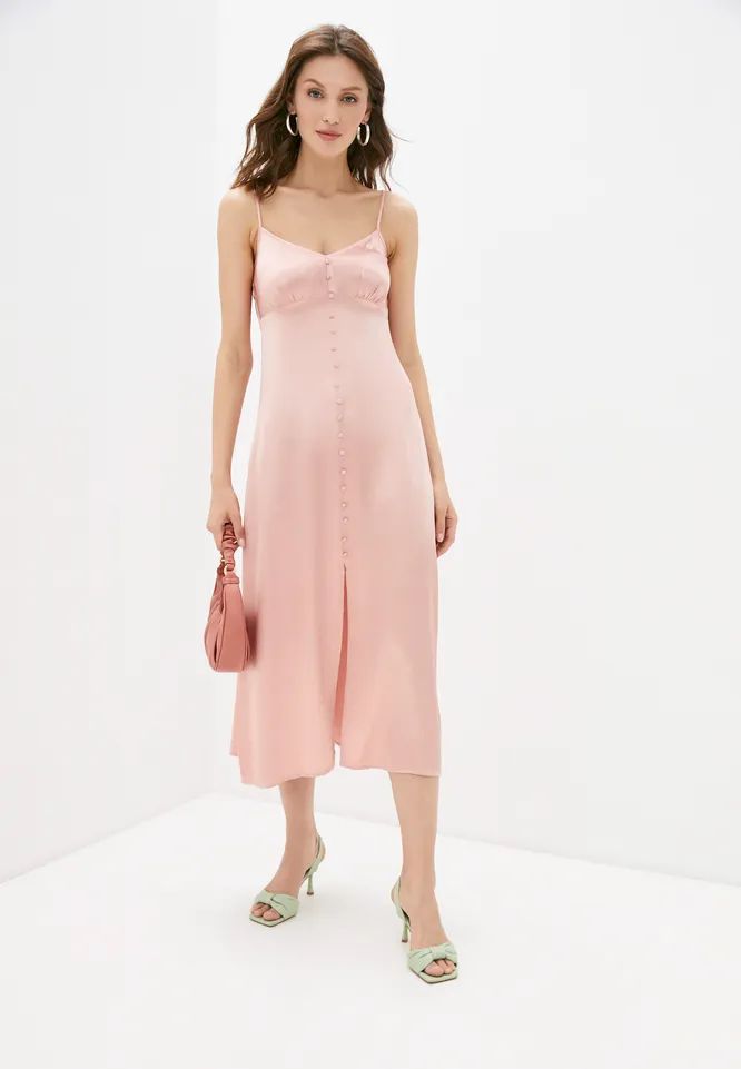 Rochia delicata, roz din material care alunec, se va potrivi cu usurinta atat pentru look casual, cat pentru unul de seara. In primul caz, o poti purta cu sandale si o geanta tesuta din rafie, in al doilea - cu sandale gratioase si o gentuta micuta.