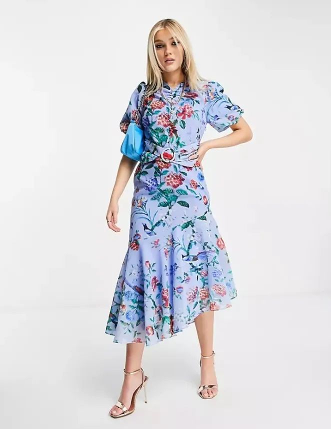 Un „must-have” al verii este rochia cu flori. Alege o croiala asimetrica cu maneci voluminoase. Arata elegant, cu sandale stralucitoare.