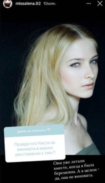Shishkova a decis sa rupa tacerea. Raspunzand prietenilor sai virtuali la intrebarea: „E adevarat ca Nastia nu e vinovata in despartirea voastra cu Timati?”, pe instastories, blonda a scris: „Da, au zburat impreuna cand eram insarcinata. Dar in general, nu este de vina.”