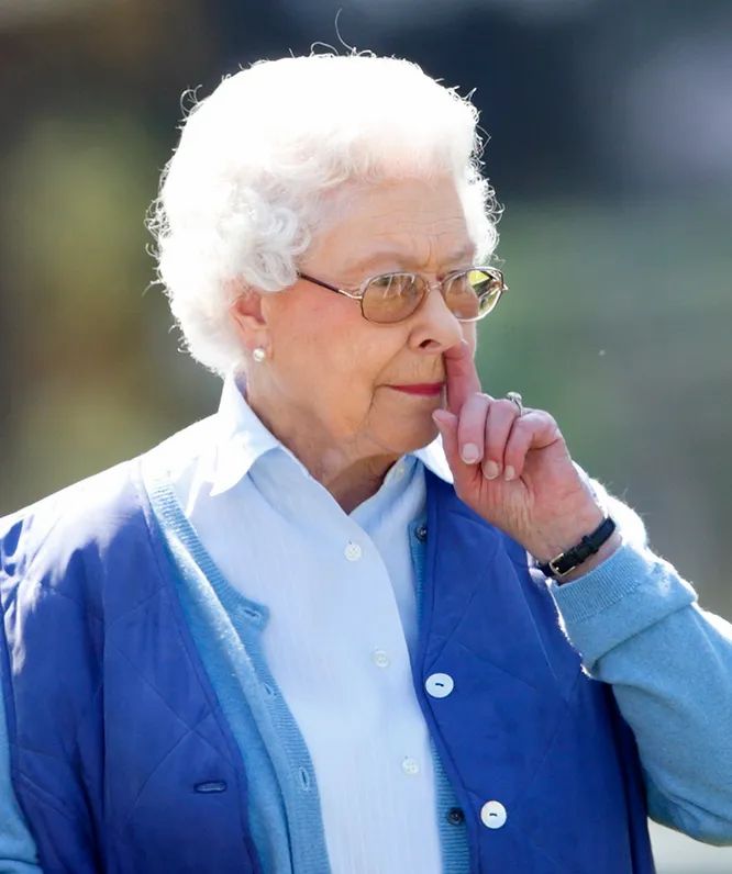 Da, Elisabeta a II-a isi scormoneste nasul, acum ai vazut totul. Ei bine, cineva ii va spune ceva? Ea este regina ...